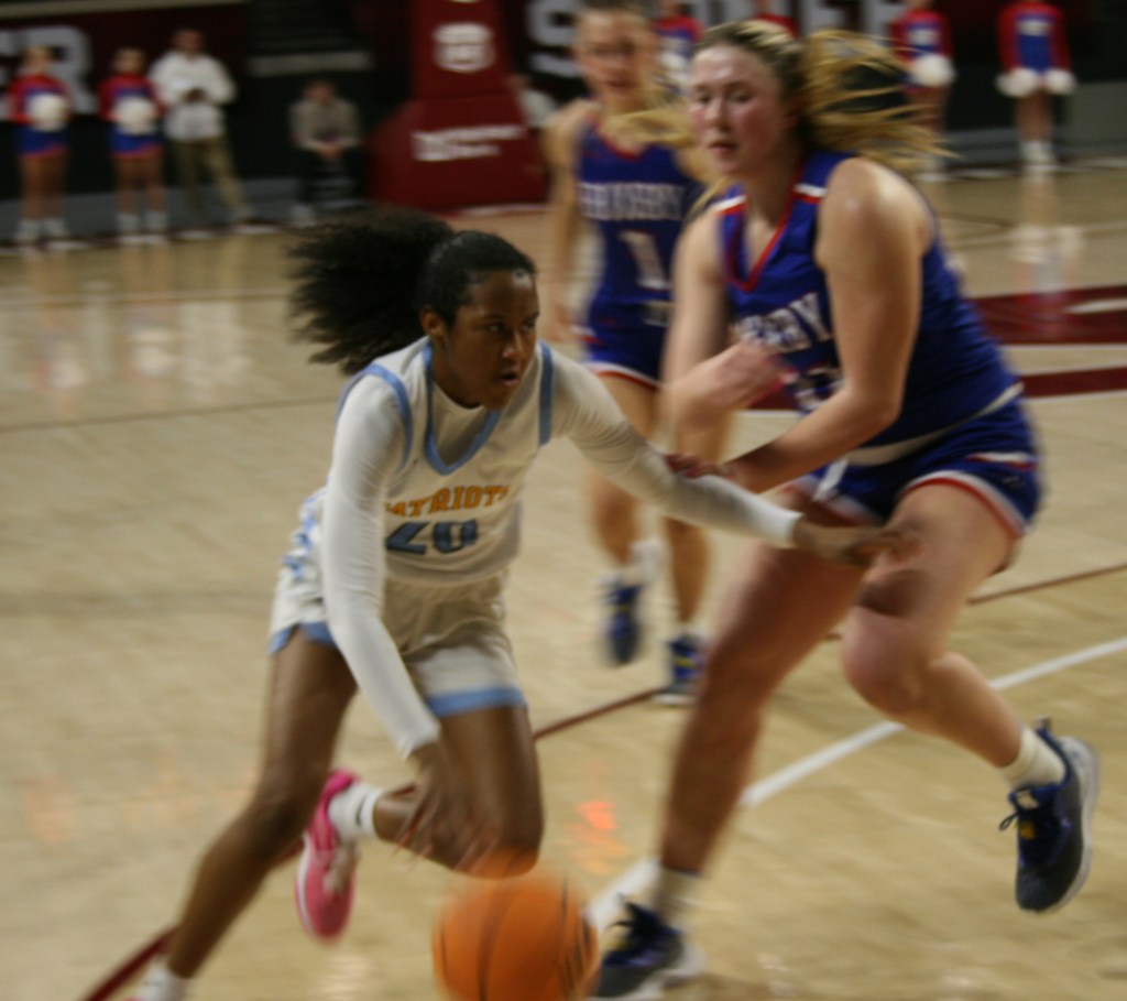 The Lady Patriots (25-1) never trailed, sprinting out to a 17-2 lead after one quarter. The Lady Spartans (21-8) outscored West in the second quarter as neither offense could get going. West hit 2-of-12 from the field in that quarter.