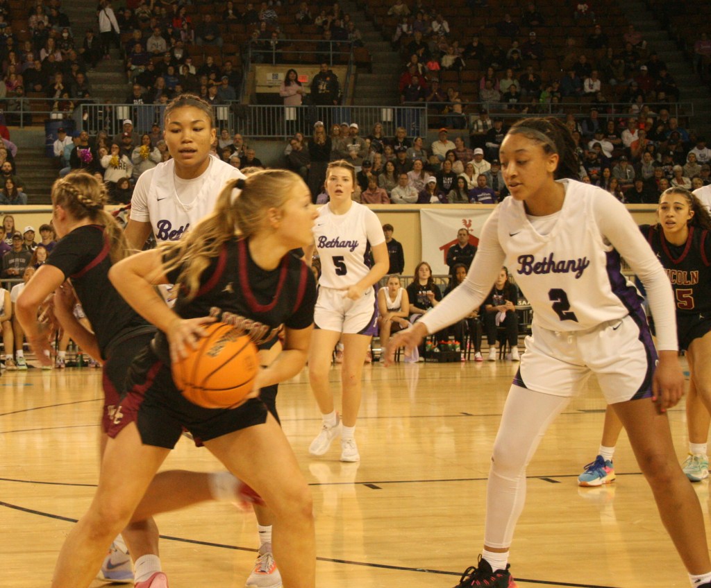 Bethany pulled away with buckets from juniors Keziah Lofton and Kayten Donley. Senior Avery Marchino turned a halfcourt steal into an easy layup. Donley added a 3-point play off an inbounds play (made possible by a big defensive rebound she snagged).