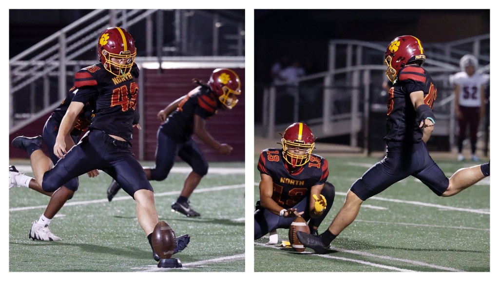 Putnam City North senior kicker Colin Patton was busy kicking extra points and kickoffs Friday (Oct. 11, 2024) in the Panthers’ 70-0 win over Capitol Hill. (PHOTOS: Richard T. Clifton)