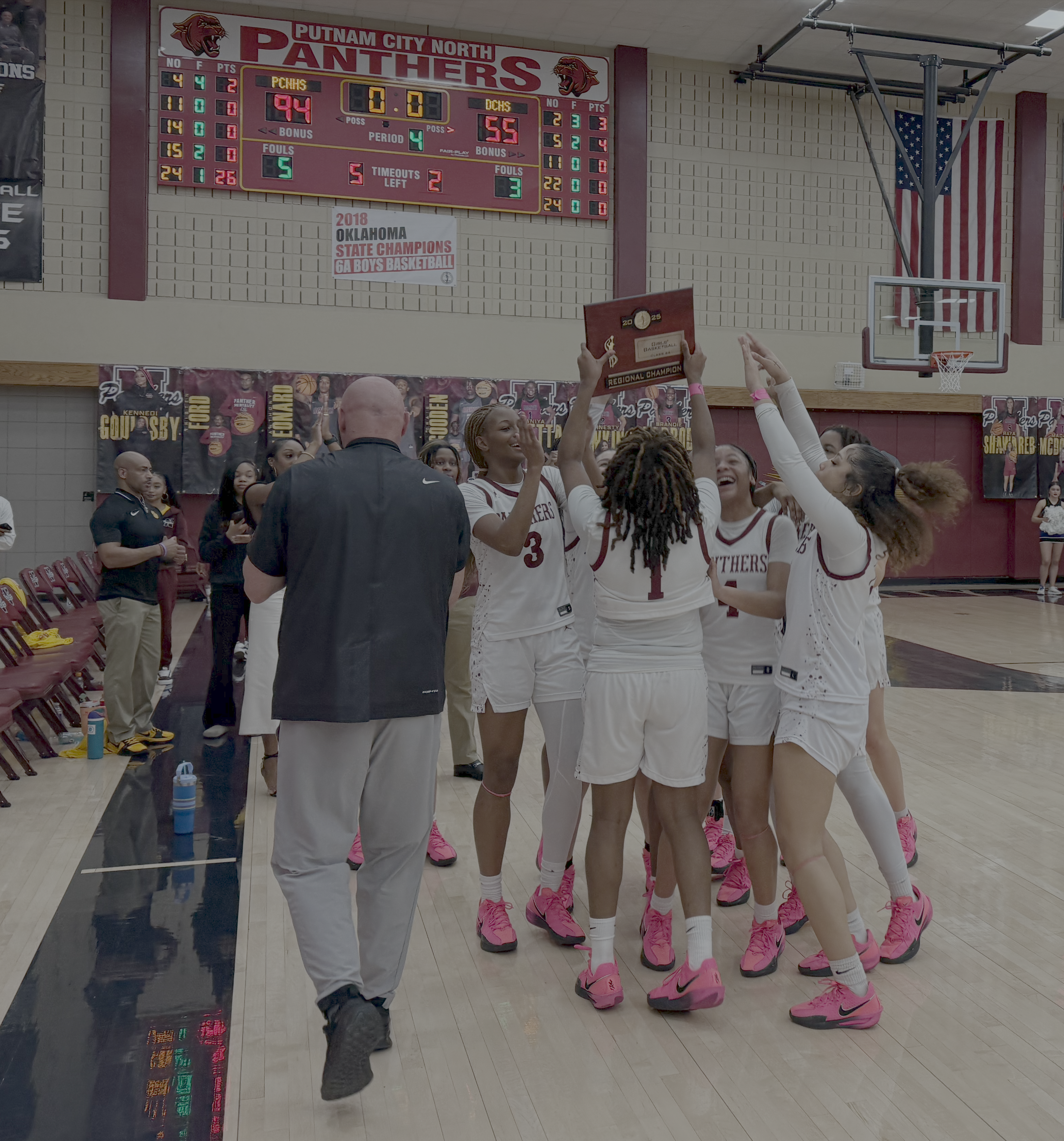 Putnam City North poses with the regional championship trophy after beating Deer Creek, 94-55, Saturday (March 1, 2025). (PHOTO: Joel Reagan)