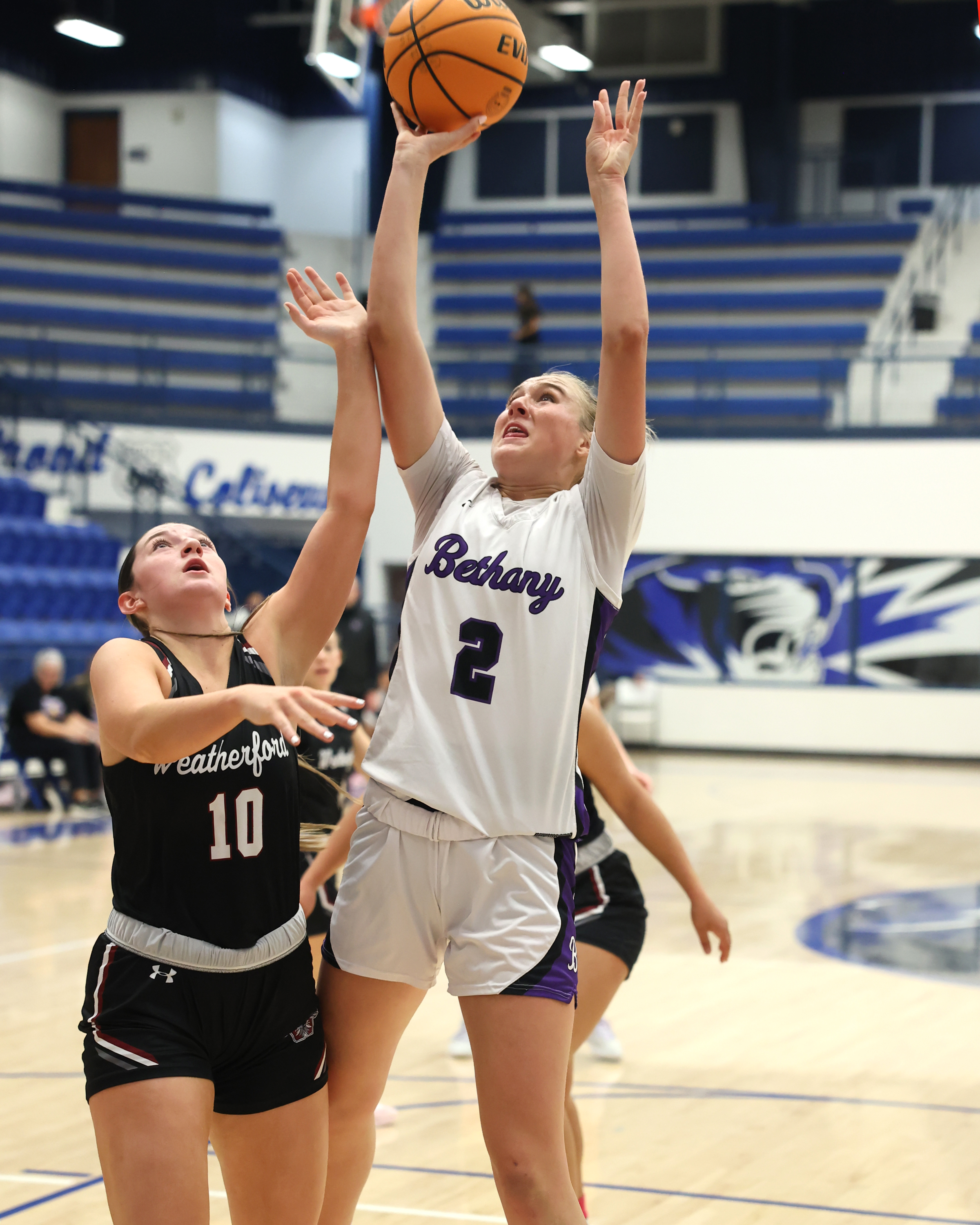 Weatherford widened a 16-13 halftime lead in the third quarter, outscoring Bethany, 14-6. The Bronchos got treys from senior Maddison McNutt and junior Ali Linn in the period.