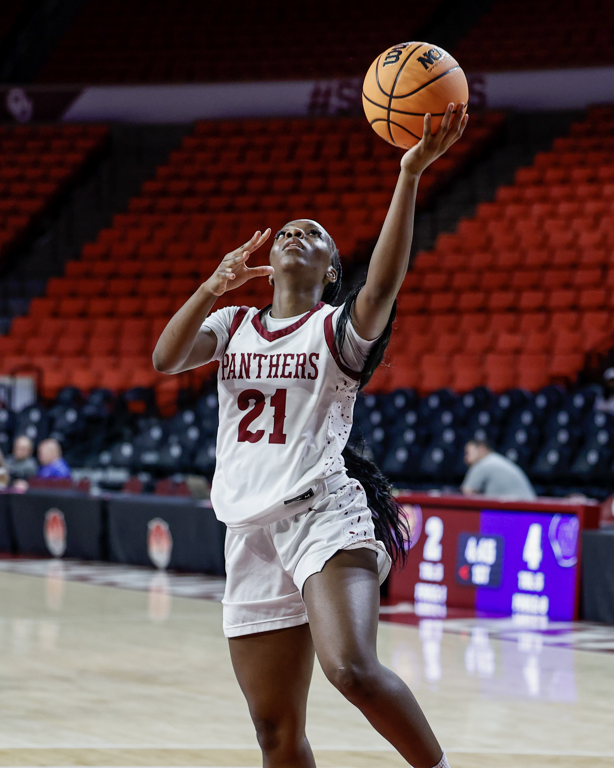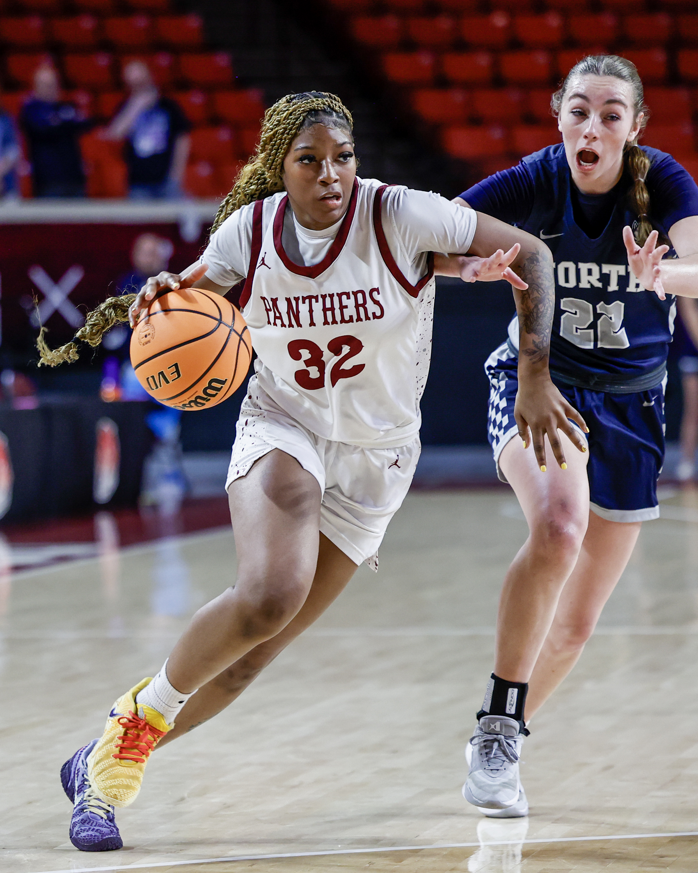 After that bucket, Edmond North couldn’t get the ball to midcourt. Panther senior Kiana Gray stole the ball from Edmond North’s Kinzie Hazzard and scored. North had scored four points in 25 seconds for a 14-10 lead at the end of the quarter.